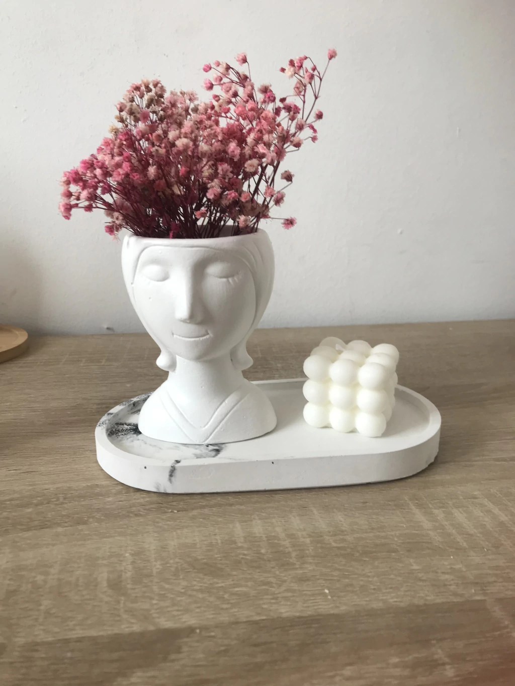 Adorno Decorativo para tu mesa jarrón flores vela plato ovalado